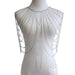 Couleurs disponibles : or et argent. Matériau : alliage d'aluminium. Le design repose sur des mailles multiples, fines et rapprochées, qui offrent maintien discret et toucher soyeux sur la peau. Finition polie pour un effet lisse et brillant. Conception pensée pour être portée directement sur le corps ou par-dessus un tissu léger.