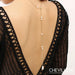 Conçu avec des matériaux listés clairement. Matière : acier inoxydable (résistant à l'oxydation) et zircons pour l'éclat. Longueur de la chaîne : 65 cm, idéale pour tomber juste au creux du dos sur une robe à dos nu. Finition argentée soyeuse et lisse qui capte la lumière sans être criarde.