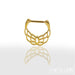 Ce septum est fabriqué dans un alliage hypoallergénique, exempt de nickel, pour limiter les risques d'irritation. La finition est un plaqué or qui conserve l’éclat malgré le port répété. Plusieurs diamètres sont proposés pour un ajustement précis selon ta morphologie.